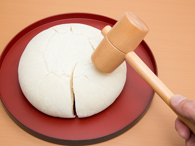 In most parts of Japan, kagami mochi is on display for several weeks, by which time the omochi rice cakes have dried out and begun to crack. KAGAMI-BIRAKI, the ritual smashing of the dried out omochi,is performed on January 11.