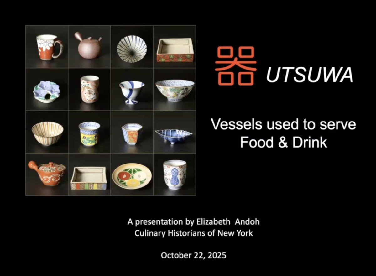 Culinary Historians of New York hosted an online webinar with Elizabeth Andoh on October 22, 2025. To listen, and download printed materials related to the presentation, click on the image here