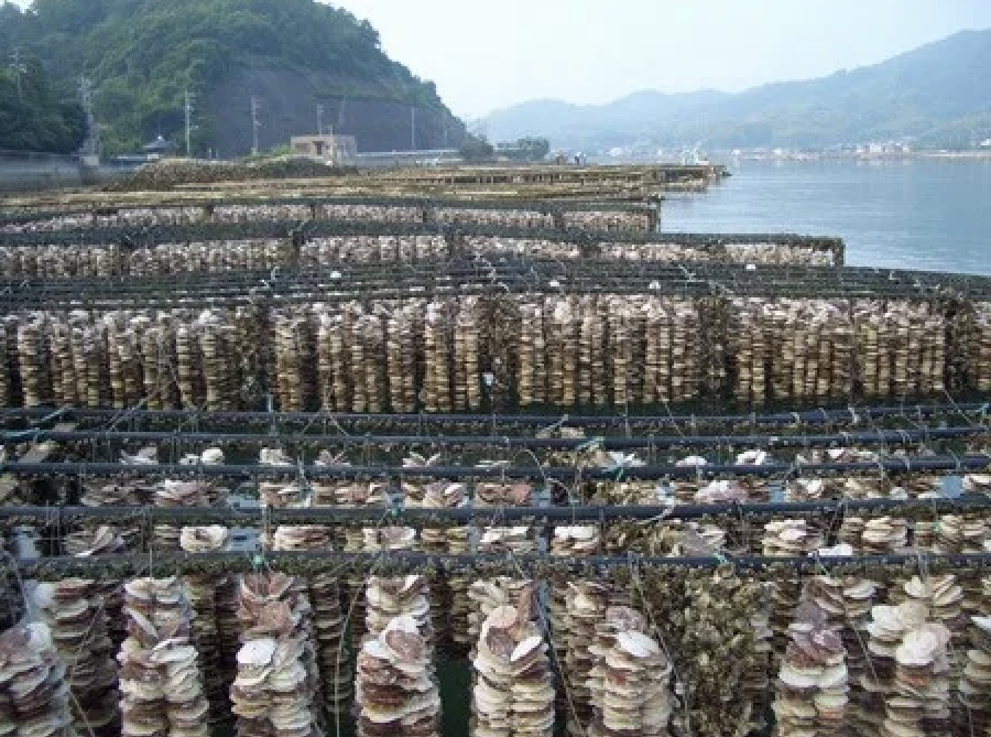 In Japan, oyster farming began in and around Hiroshima in the 16th century. Today, there are oyster farms scattered around the Japanese archipelago, some using a suspension method from floating rafts, others employing baskets submerged in tidal beds.
